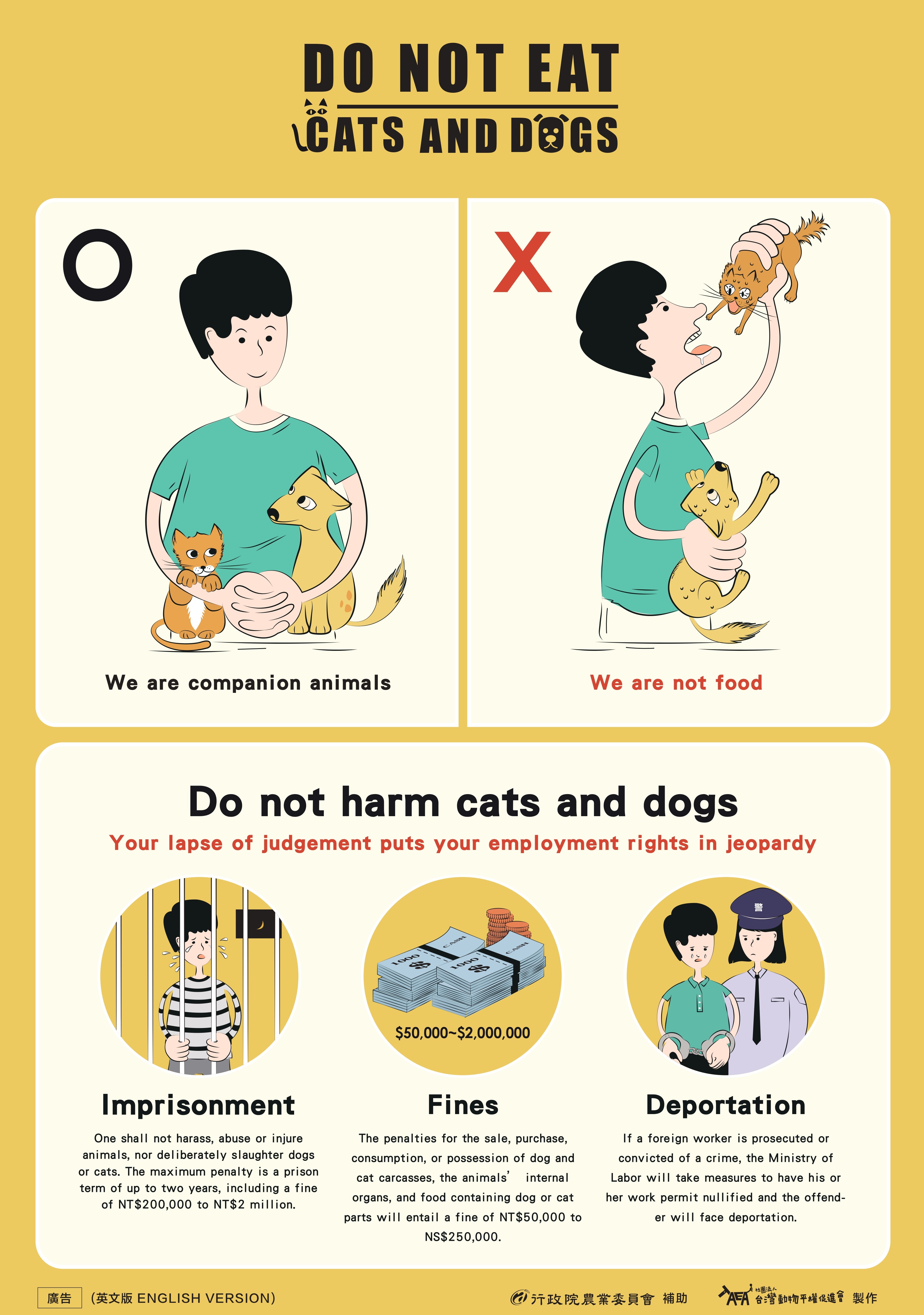 (農業部)避免移工違反我國禁止宰殺及食用犬貓宣導海報-多國語言版