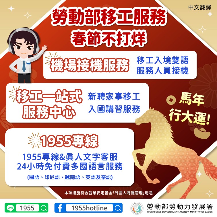 •1955專線 : 1955專線&真人文字客服24小時免付費多國語言服務(國語、印尼語、越南語、英語及泰語)