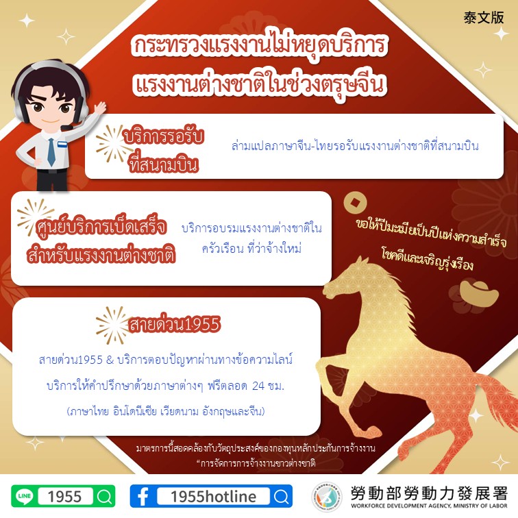▍กระทรวงแรงงานไม่หยุดบริการแรงงานต่างชาติในช่วงตรุษจีน