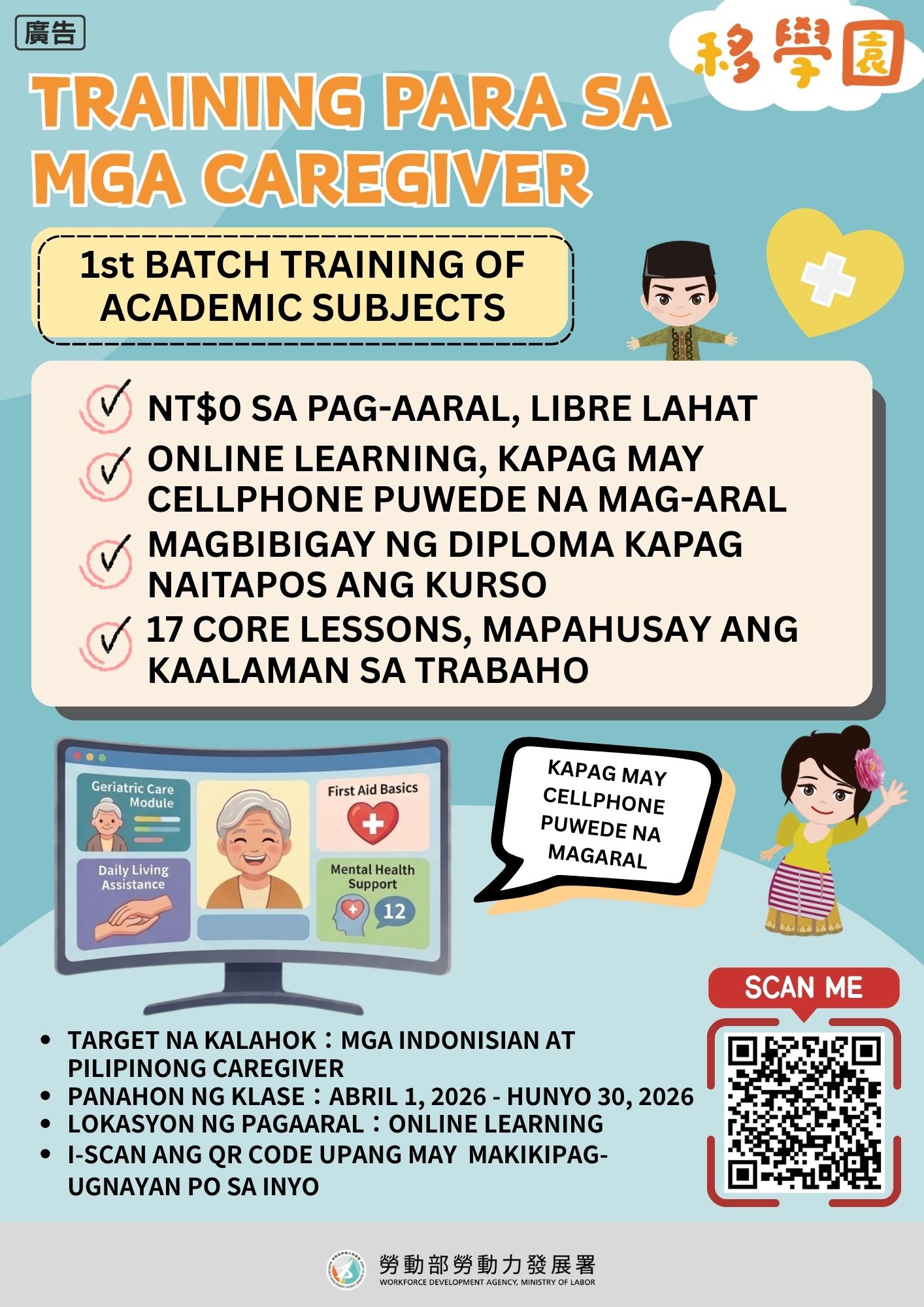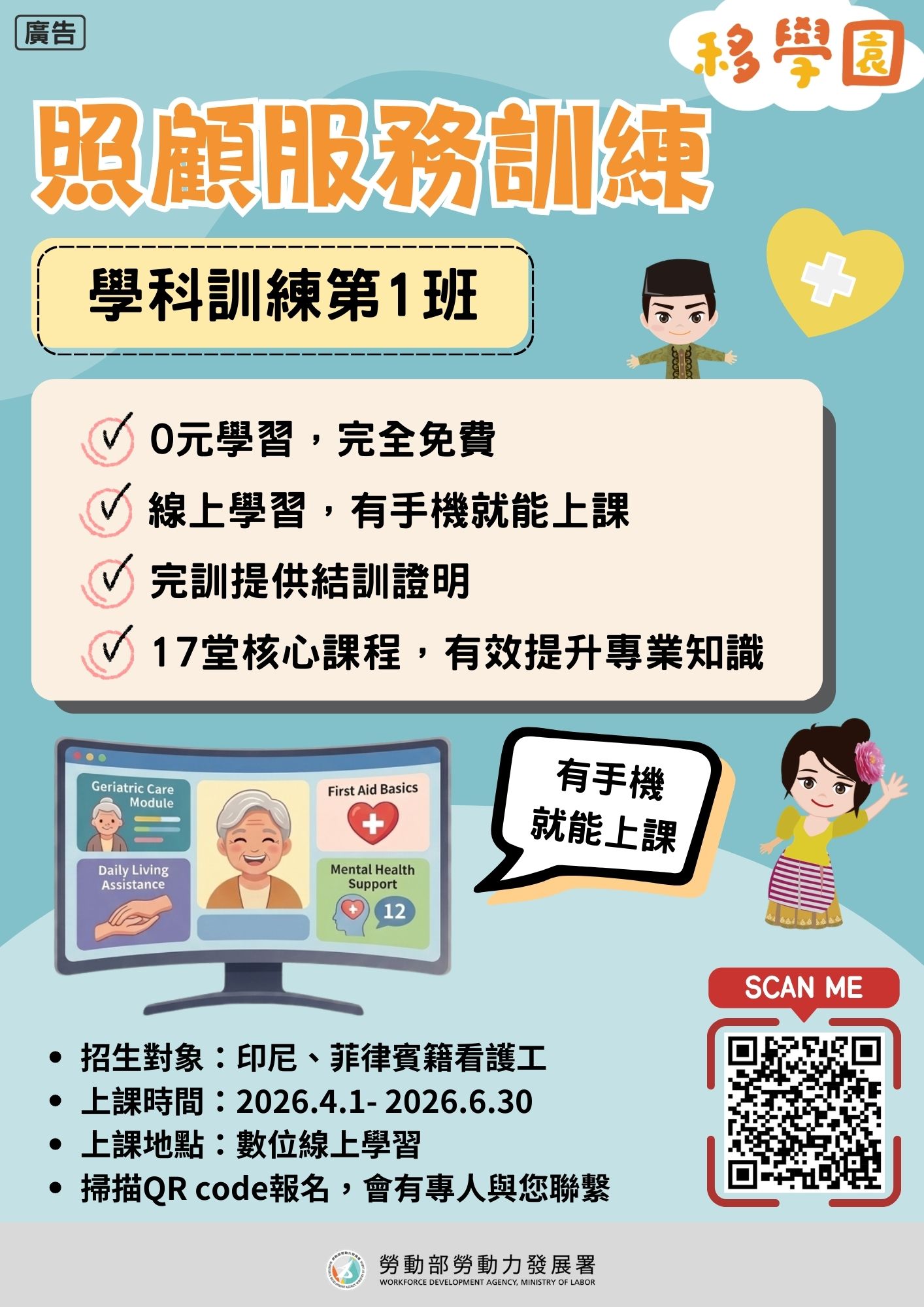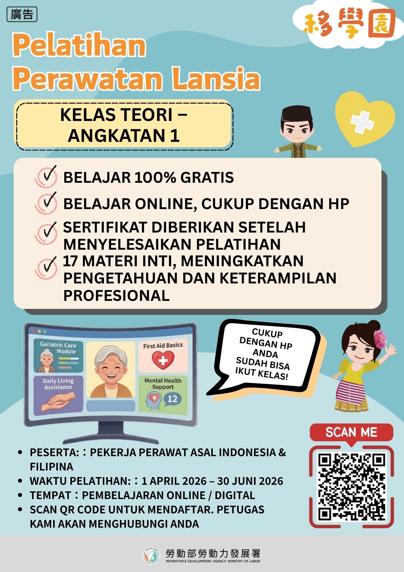 #照顧服務員 #免費課程 #移學園 #印尼移工 #看護培訓 #免費線上學習 #照護證書 #移工社群 #看護職涯 #在臺移工 #技能提升 #勞動部 #勞動力發展署