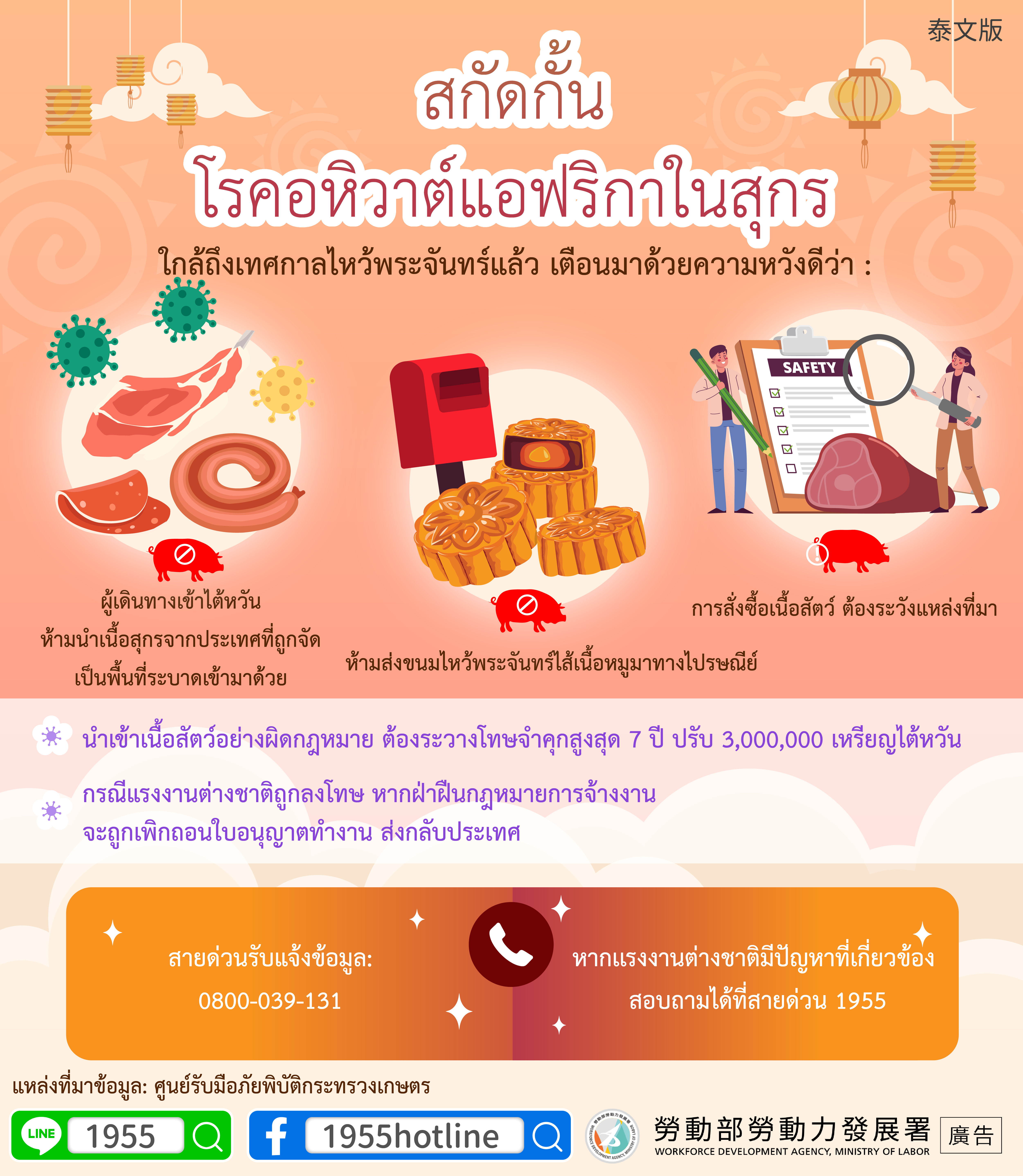 1.ผู้เดินทางเข้าไต้หวัน ห้ามนำเนื้อสุกรจากประเทศที่ถูกจัดเป็นพื้นที่ระบาดเข้ามาด้วย
