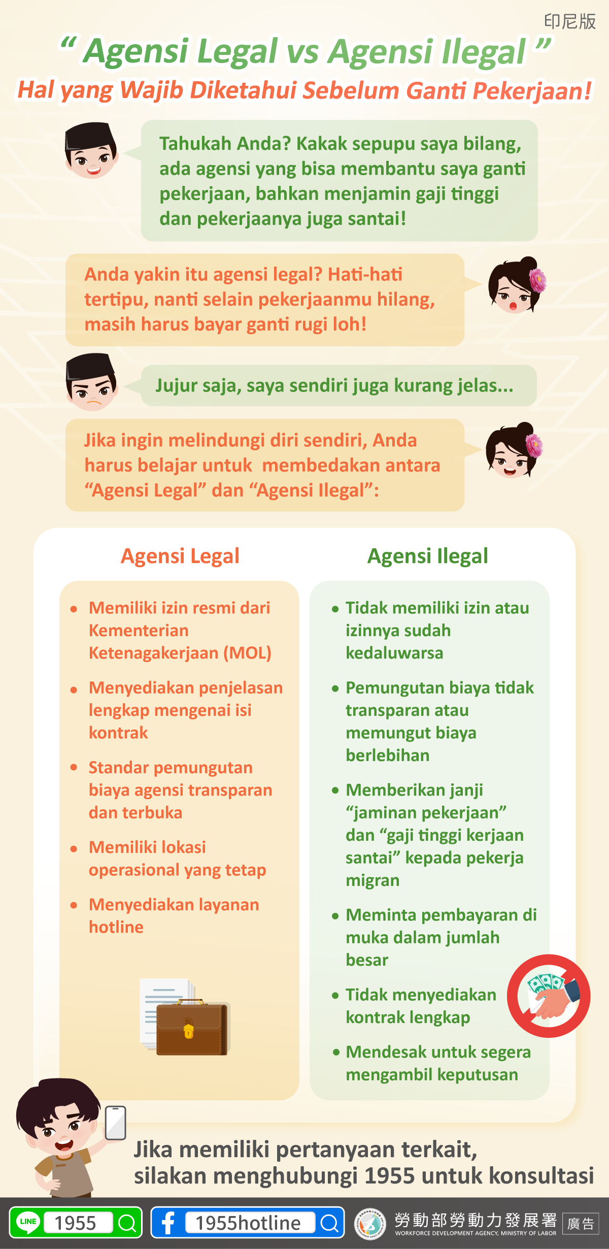 B:想保護自己,就要學會分辨「合法仲介」和「非法仲介」的差別: