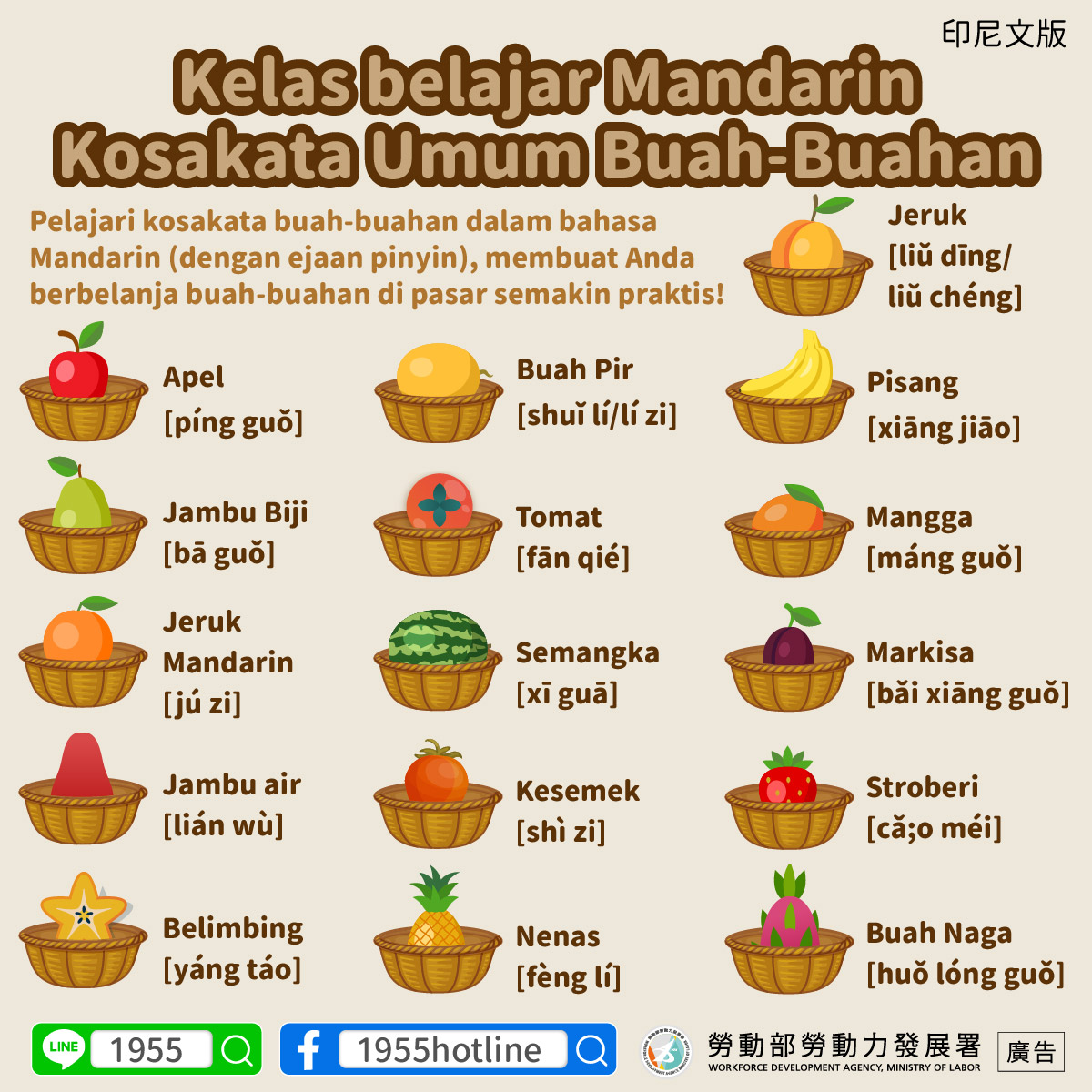 標題:Kelas belajar Mandarin Kosakata Umum Buah-Buahan