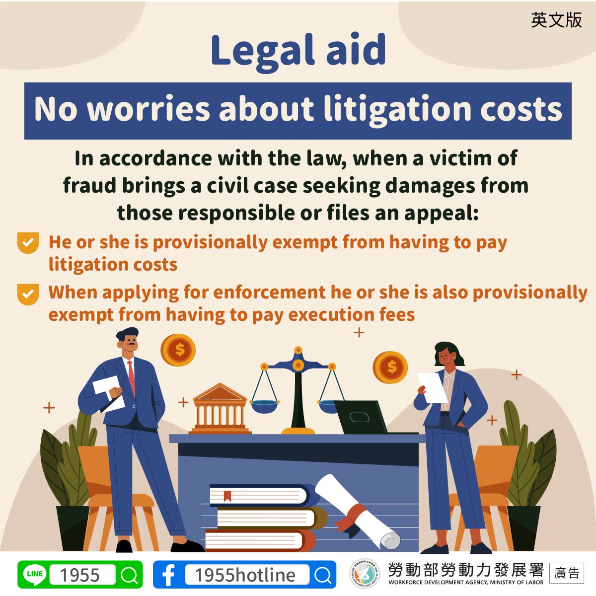 標題:Legal aid No worries about litigation costs
