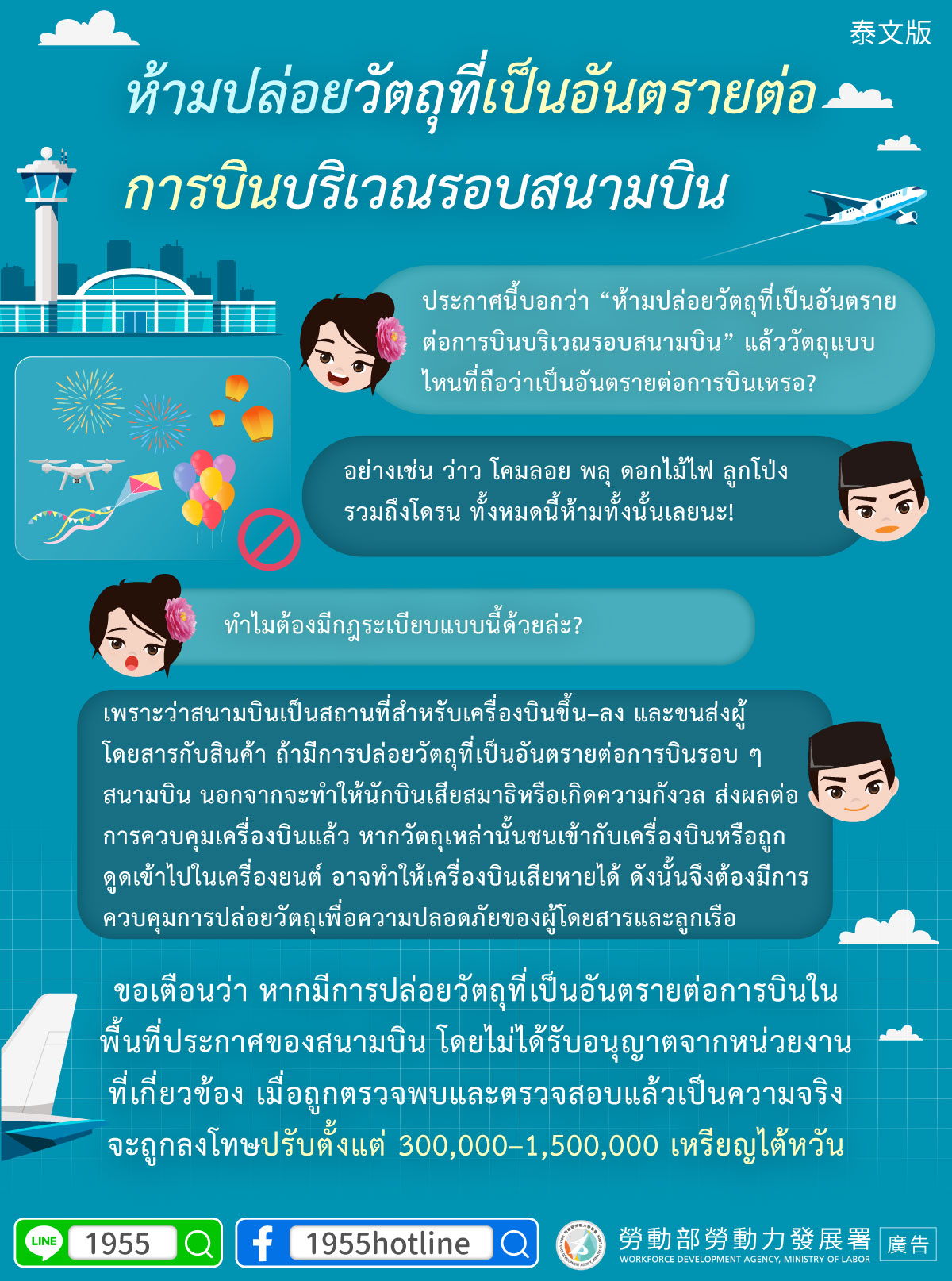 ▍ห้ามปล่อยวัตถุที่เป็นอันตรายต่อการบินบริเวณรอบสนามบิน