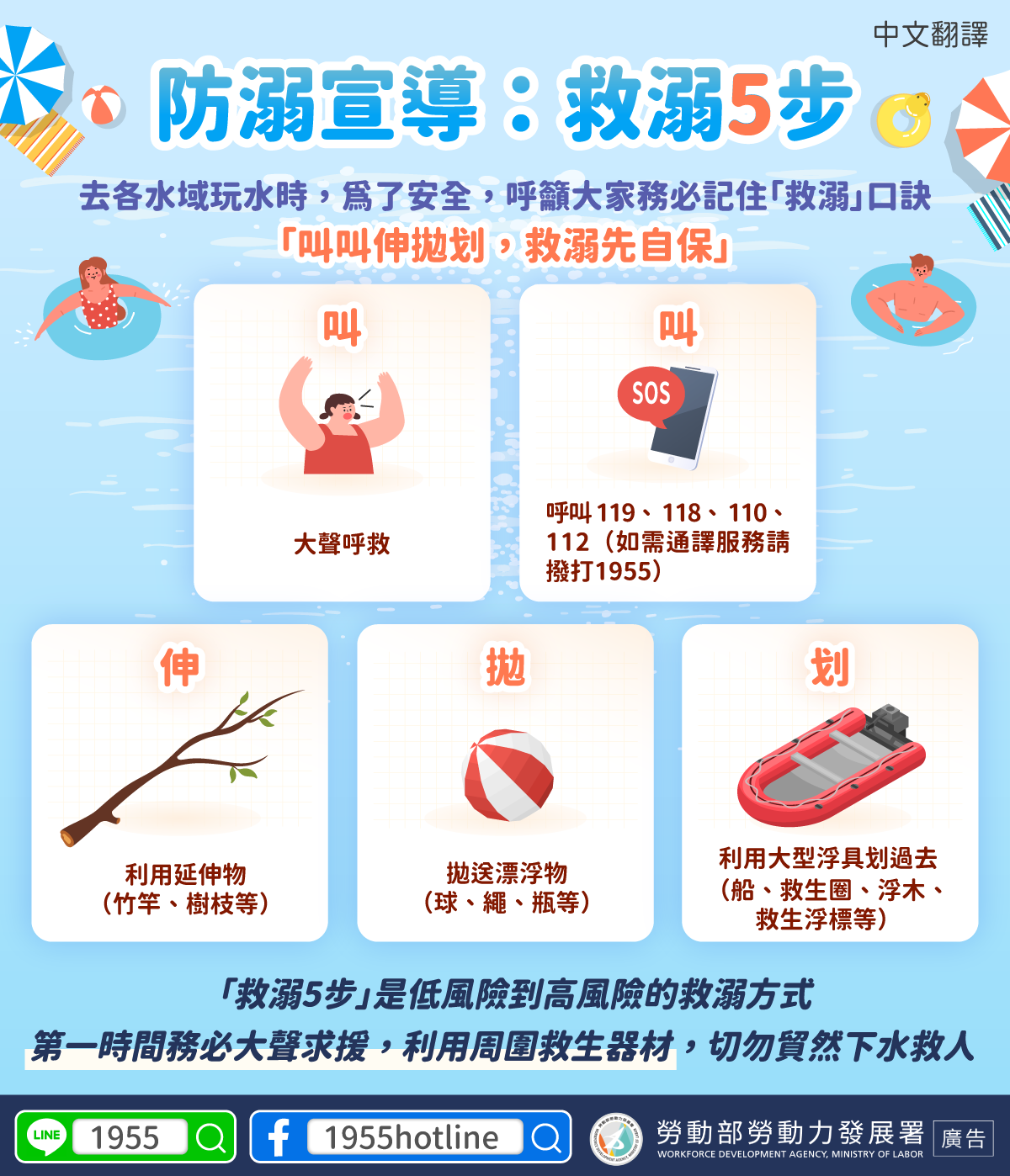 標題:LINE@移點通-【防溺宣導 救溺5步】-多國語言版