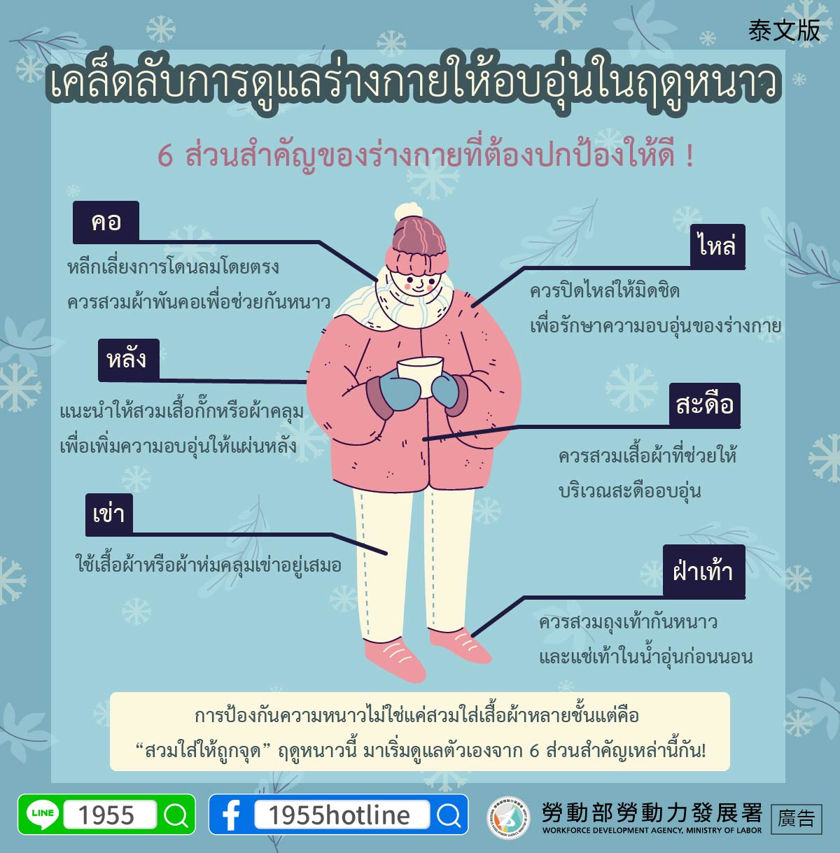標題:เคล็ดลับการดูแลร่างกายให้อบอุ่นในฤดูหนาว 6 ส่วนสำคัญของร่างกายที่ต้องปกป้องให้ดี !