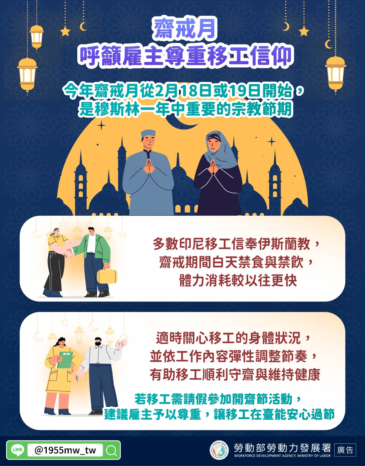 標題:LINE@移點通-【齋戒月,呼籲雇主尊重移工信仰】