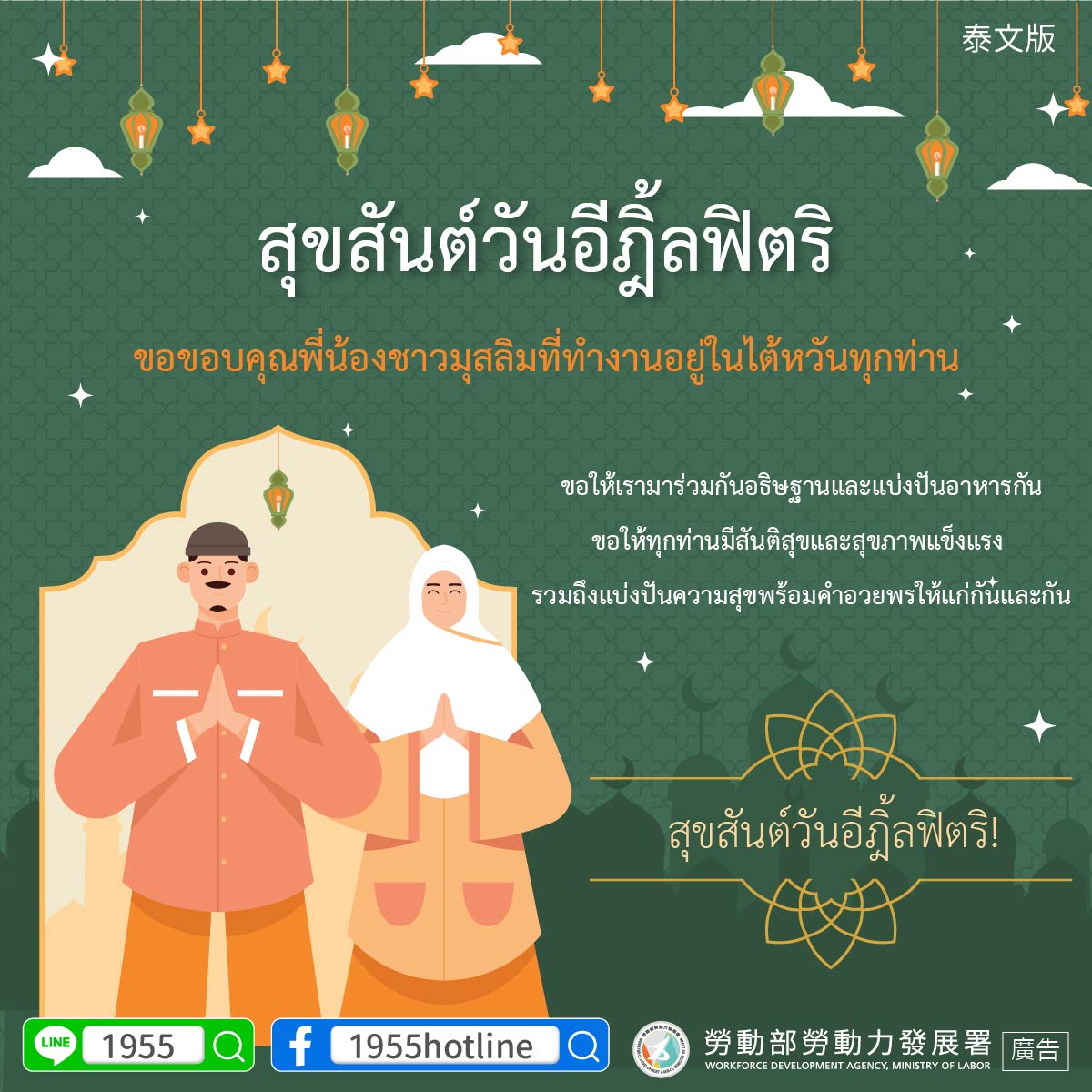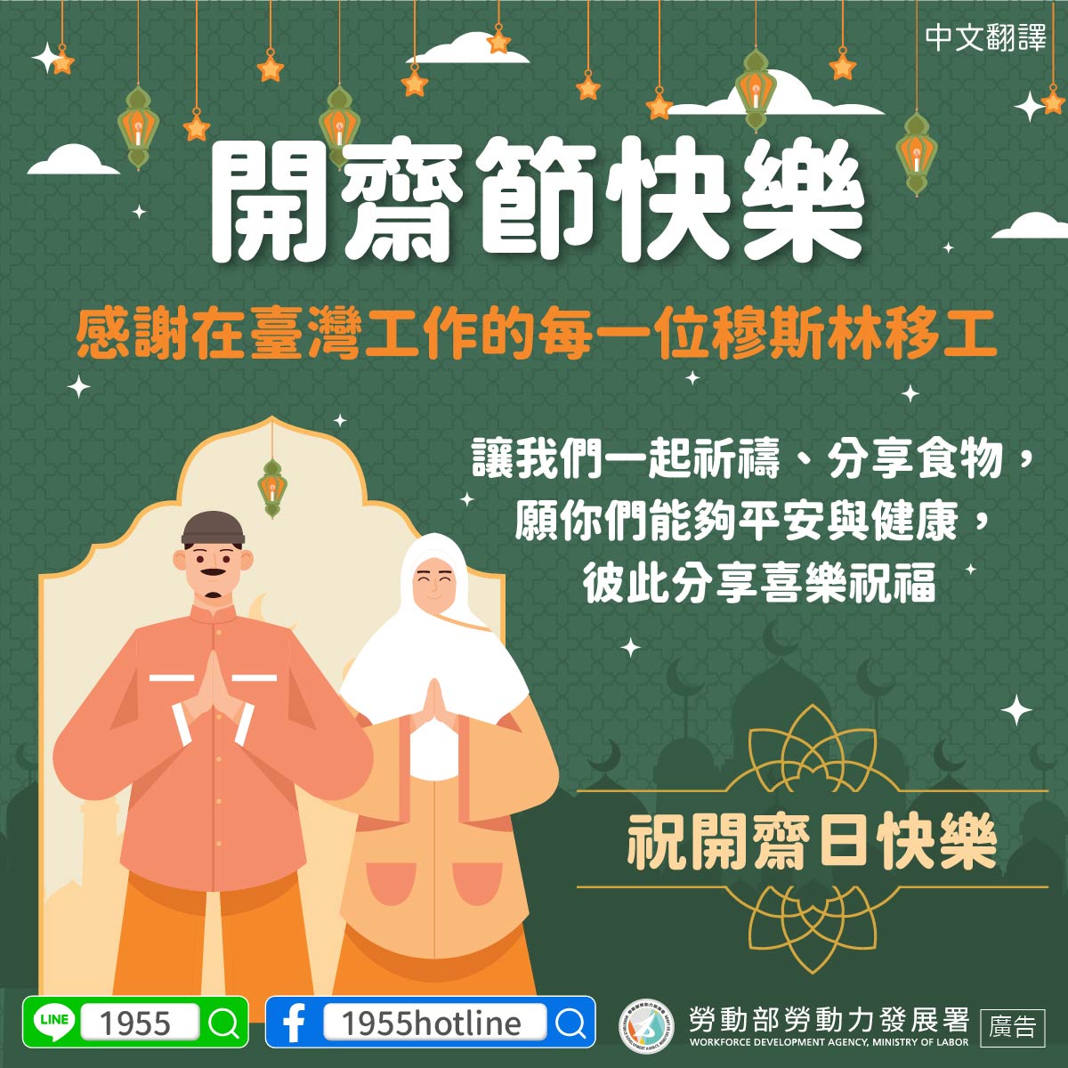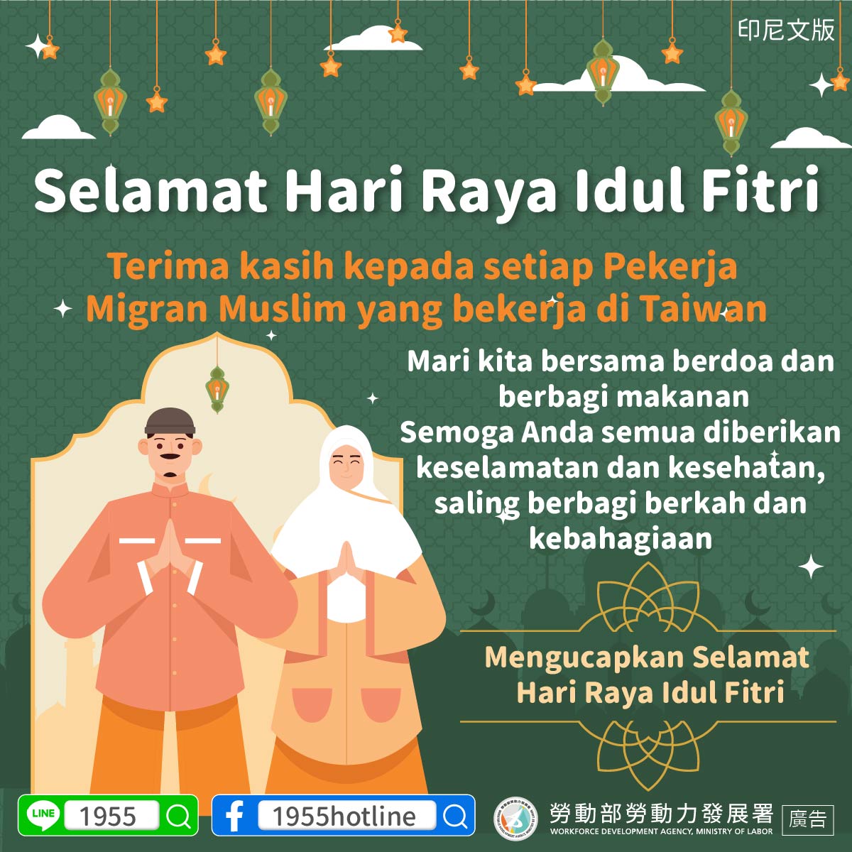 The Ministry of Labor thanks every Muslim foreign worker in Taiwan.