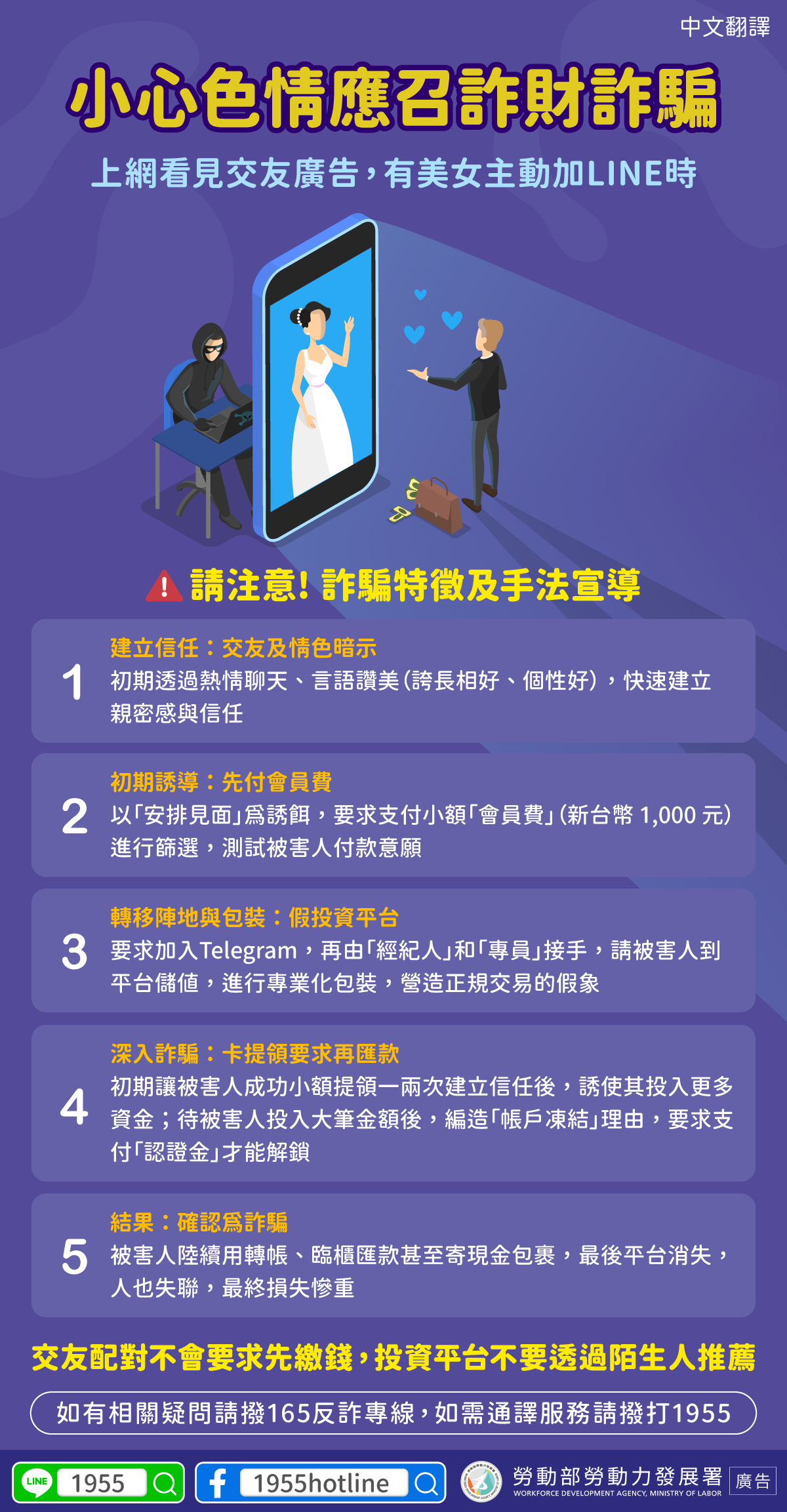 如有相關疑問請撥165反詐專線,如需通譯服務請撥打1955