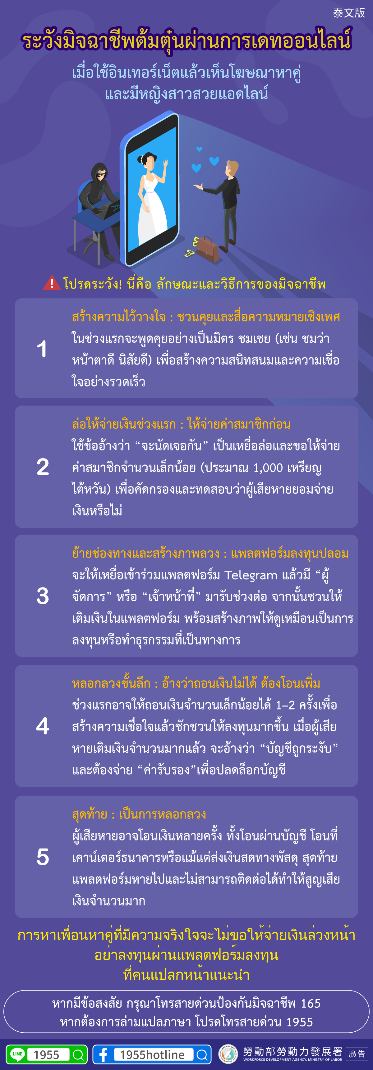 หากมีข้อสงสัย กรุณาโทรสายด่วนป้องกันมิจฉาชีพ 165